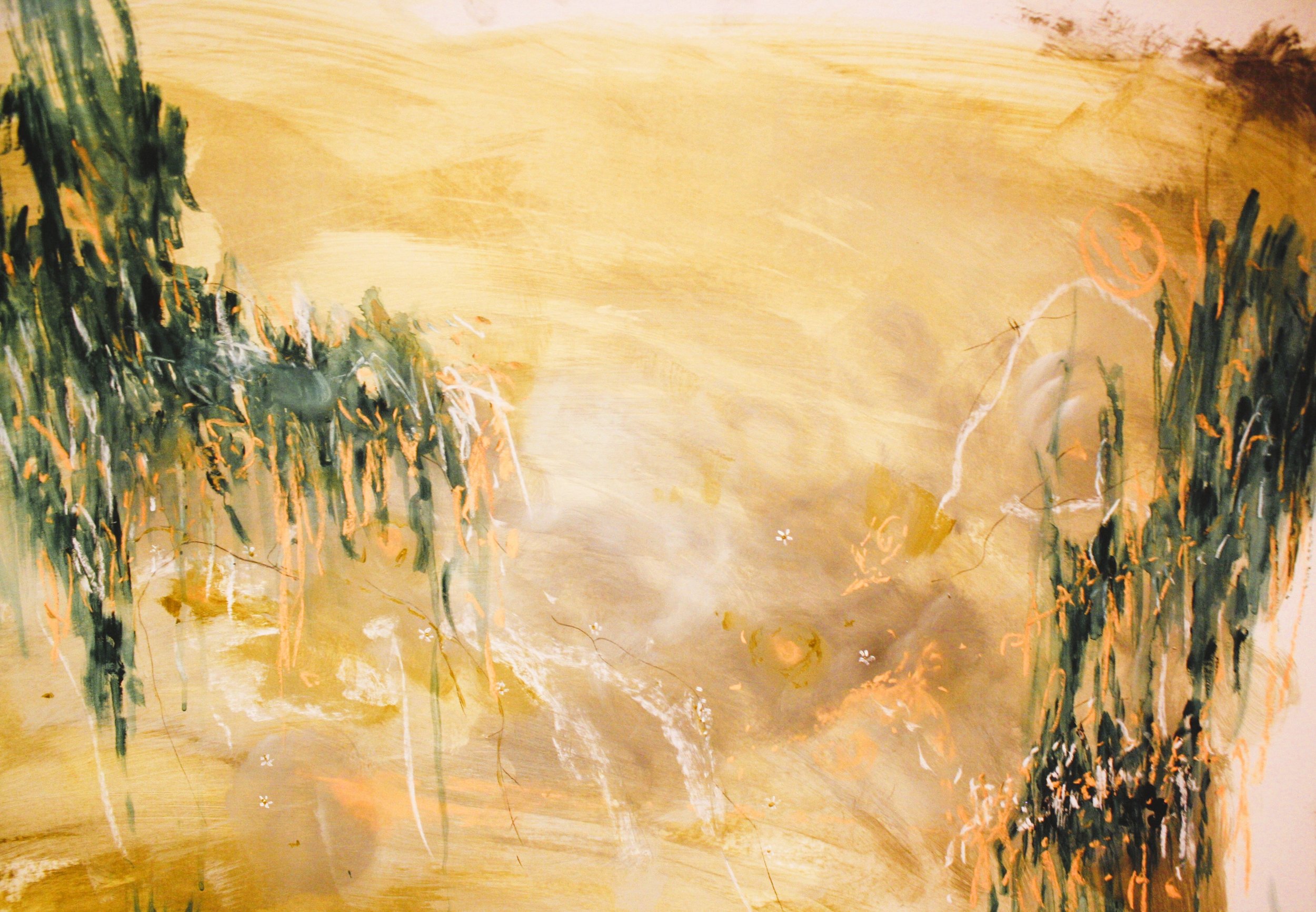 ,,The following artworks show mostly emotional landscapes and every artwork stands for a longing for happiness. Therefore they are about a connection between two different dimensions: A dimension of reality (earth) and a dimension of the afterworld.